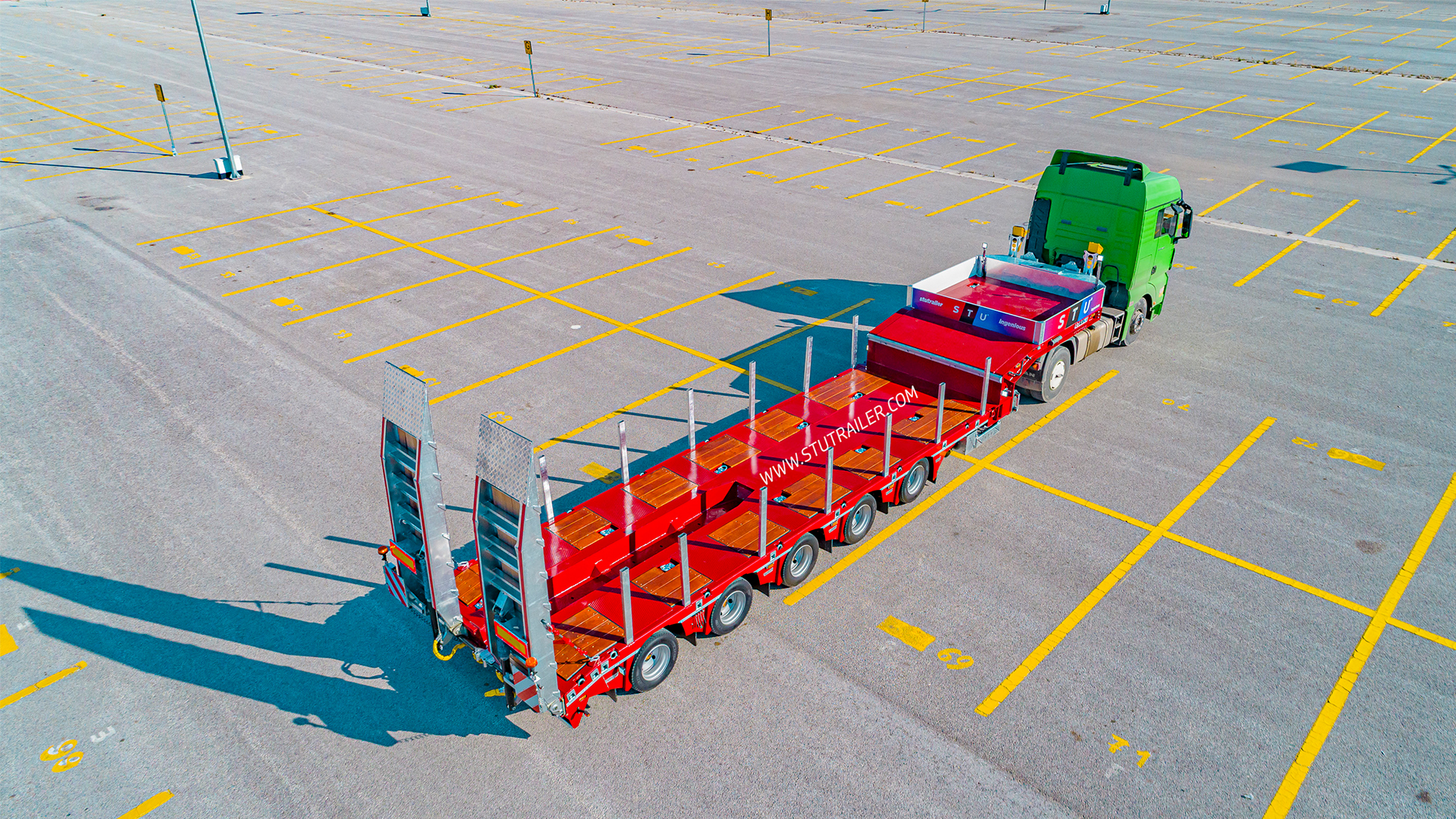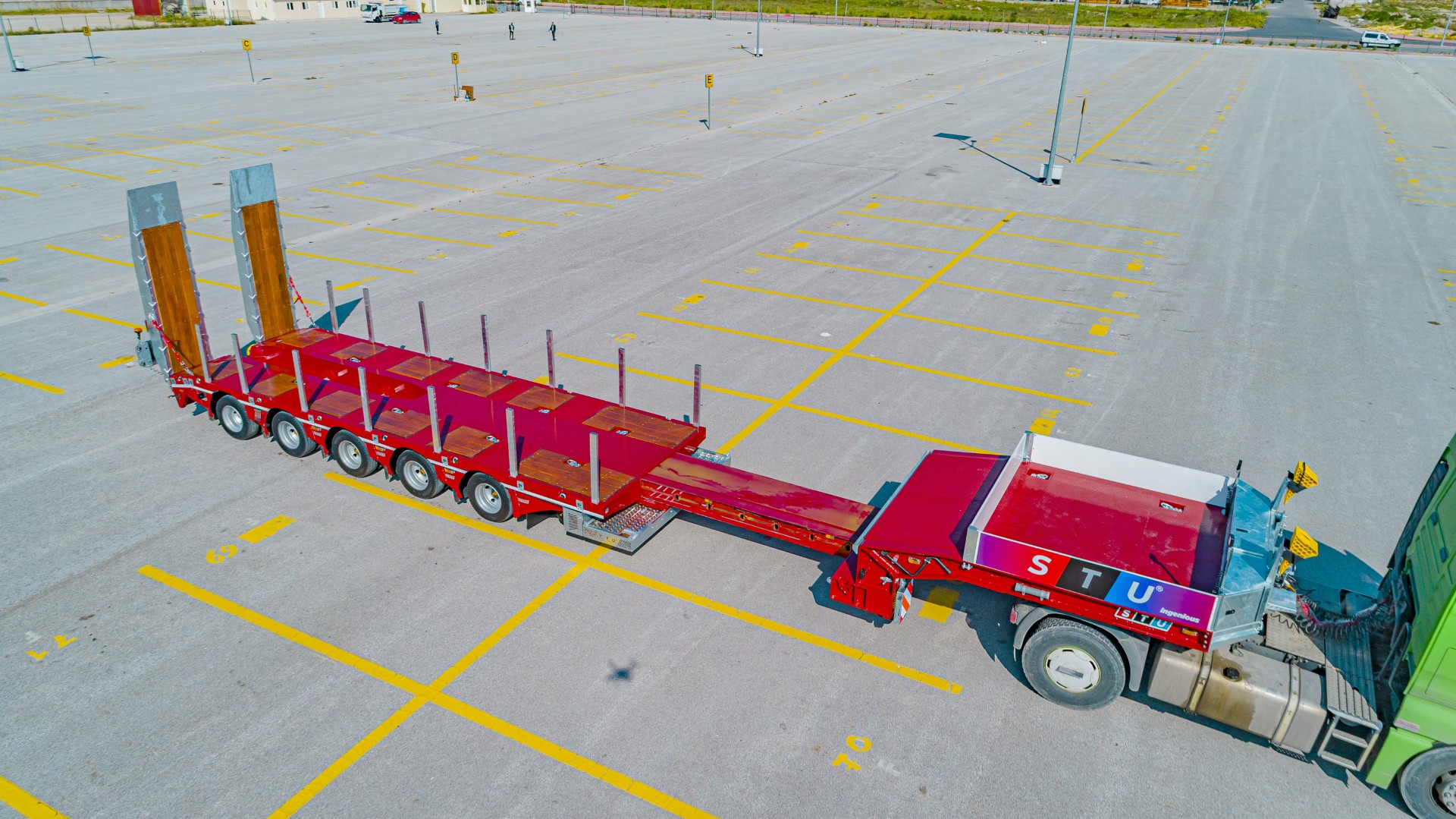 Chassis are made of ST52 or MC700 High Yield Structural Steel grade in standart package. For European Countries when the weight is important we offer MC700/Domex Steel to decrease total weight of 5Axle lowbed trailers to load more. We use Wabco or Knorr Bremse from 2s-2m to 4s-4m EBS brake systems. Pirelli, Goodyear, Bridgestone is most popular models of tyre brands. Regarding to country rules & loading types single or double tyres are avaliable. In standart package you may also find hydraulic ramps for machine loadings.